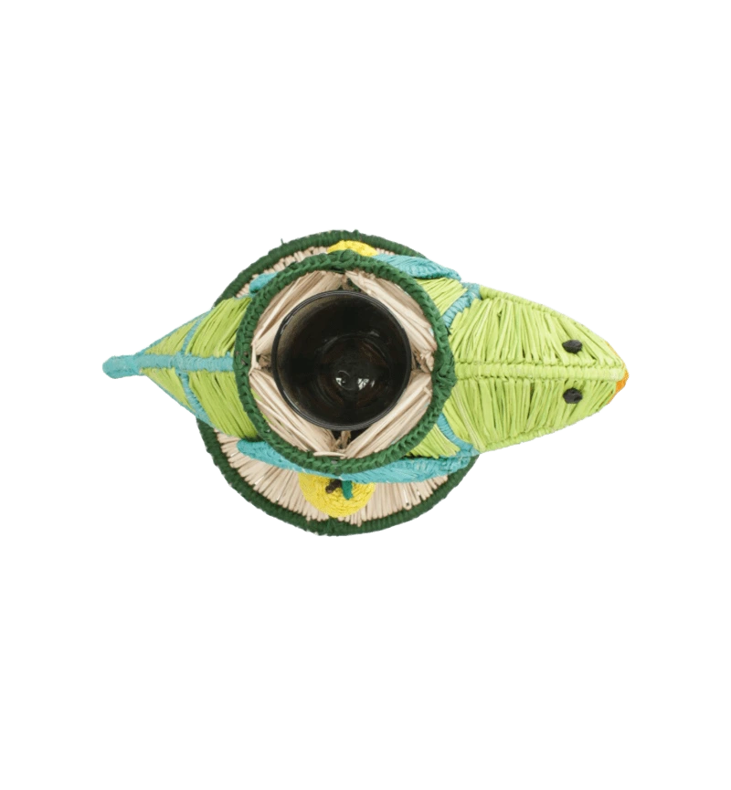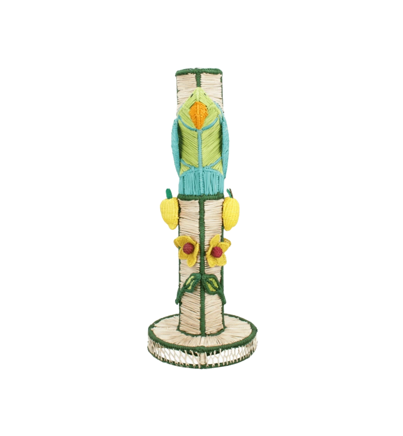 - Handwoven in natural raffia fiber and forged in steel