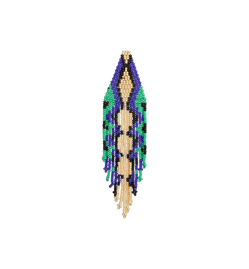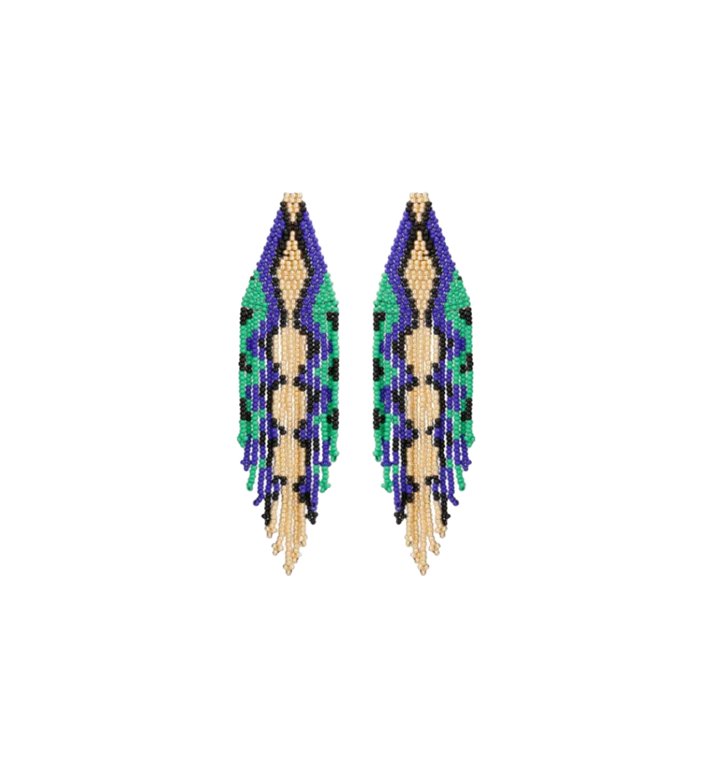 Handmade earrings by Mercedes Salazar, woven with beads by master artisans. Made with love by our artisans in the Mercedes Salazar workshop in Bogotá, Colombia.